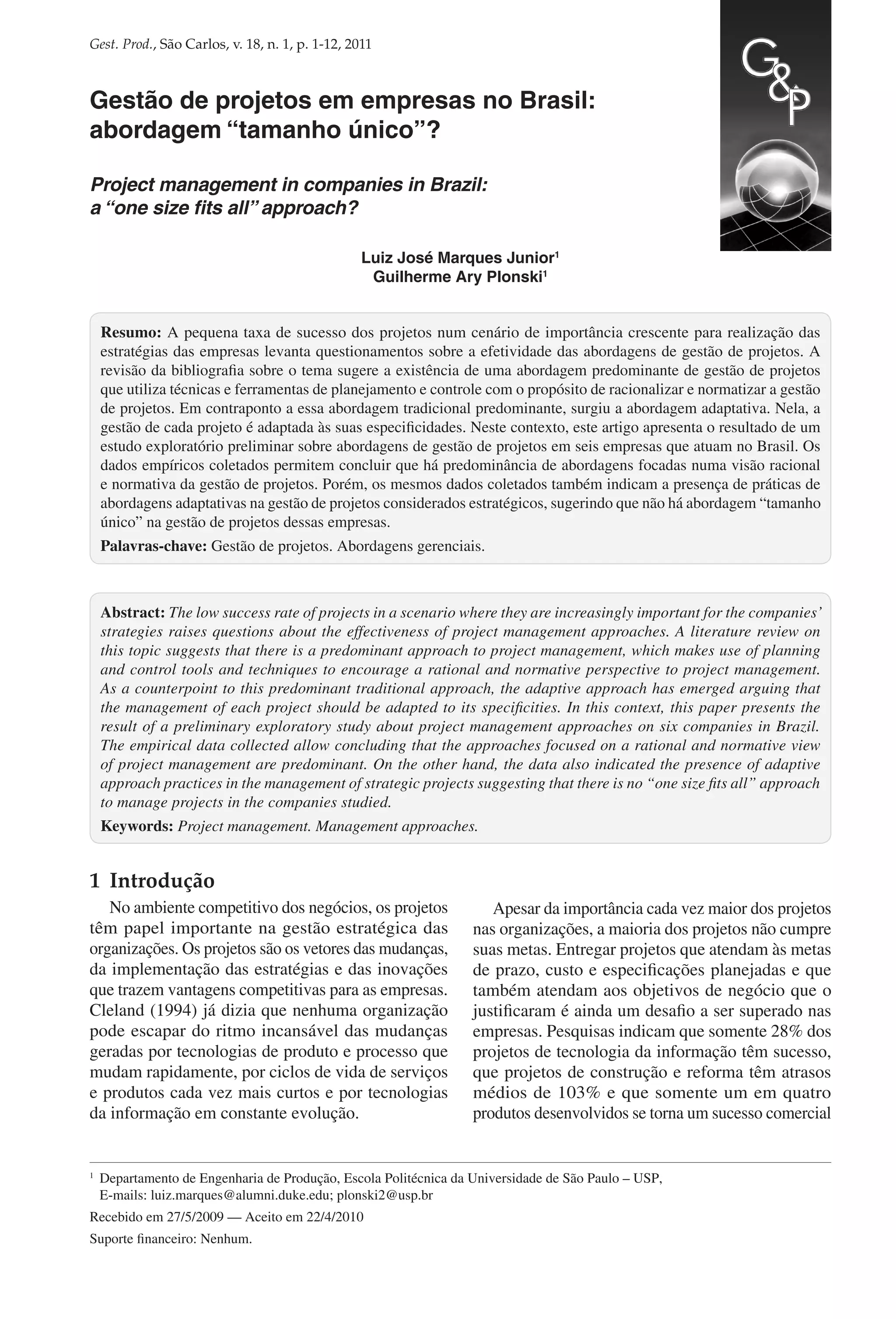 1. O documento discute duas abordagens de gestão de projetos: a abordagem tradicional focada em planejamento e controle, e a abordagem adaptativa que enfatiza a contingência de cada projeto.