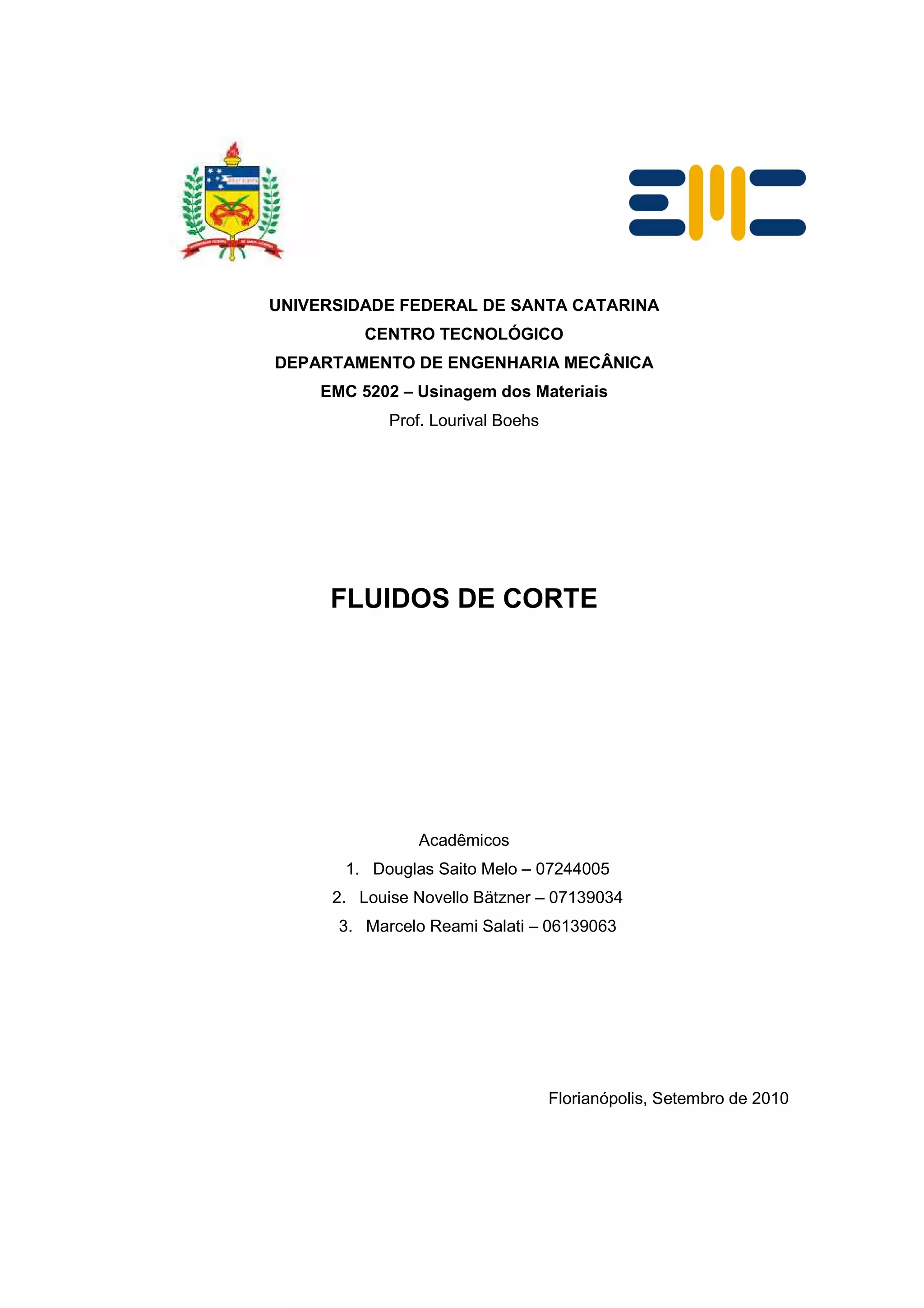 1. O documento discute fluidos de corte utilizados em processos de usinagem.