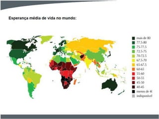 A esperança de vida é a expectativa média de vida de uma pessoa ao nascer, enquanto a esperança de saúde é o número de anos que uma pessoa pode esperar viver sem limitações ou doenças. A esperança de vida aumentou globalmente devido a melhorias na saúde pública e no acesso a cuidados médicos, mas a esperança de saúde nem sempre acompanhou esses ganhos porque as doenças crônicas estão se tornando mais comuns.
