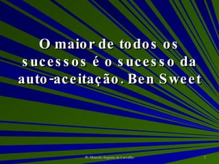 O documento apresenta várias citações sobre autoaceitação, perdão próprio e não exigir demais de si mesmo. Algumas das frases principais enfatizam que é importante ser generoso consigo mesmo, aceitar os próprios pensamentos mesmo quando não os endossa, e que cada um merece seu próprio amor e afeição.