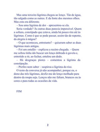 Mas uma terceiralágrima chegou ao lenço. Tão de água,
