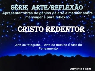 Arte da fotografia– Arte da música e Arte do Pensamento SÉRIE ARTE/REFLEXÃO Apresentar obras de gênios da arte e meditar sobre mensagens para reflexão Aumente o som CRISTO REDENTOR
