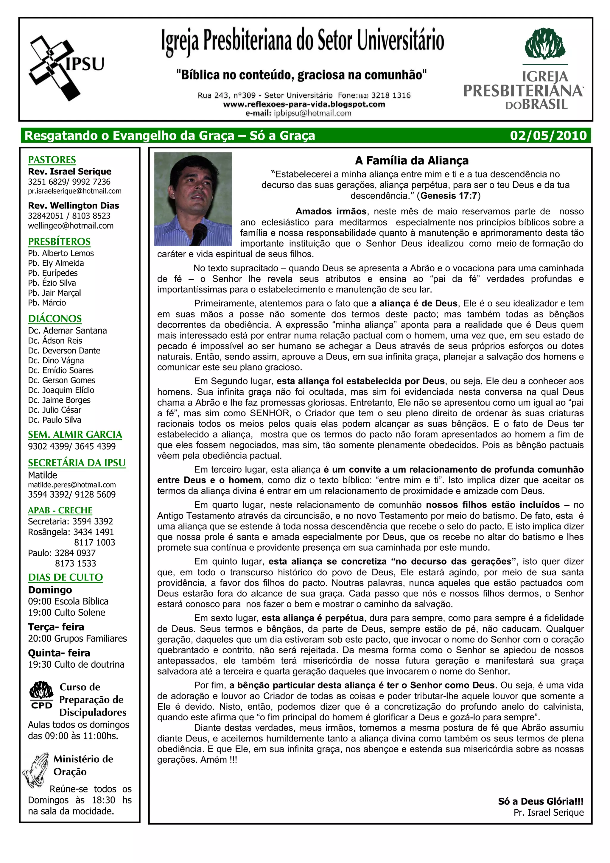 1) O documento discute os princípios bíblicos da aliança entre Deus e seu povo, especialmente no contexto da família.