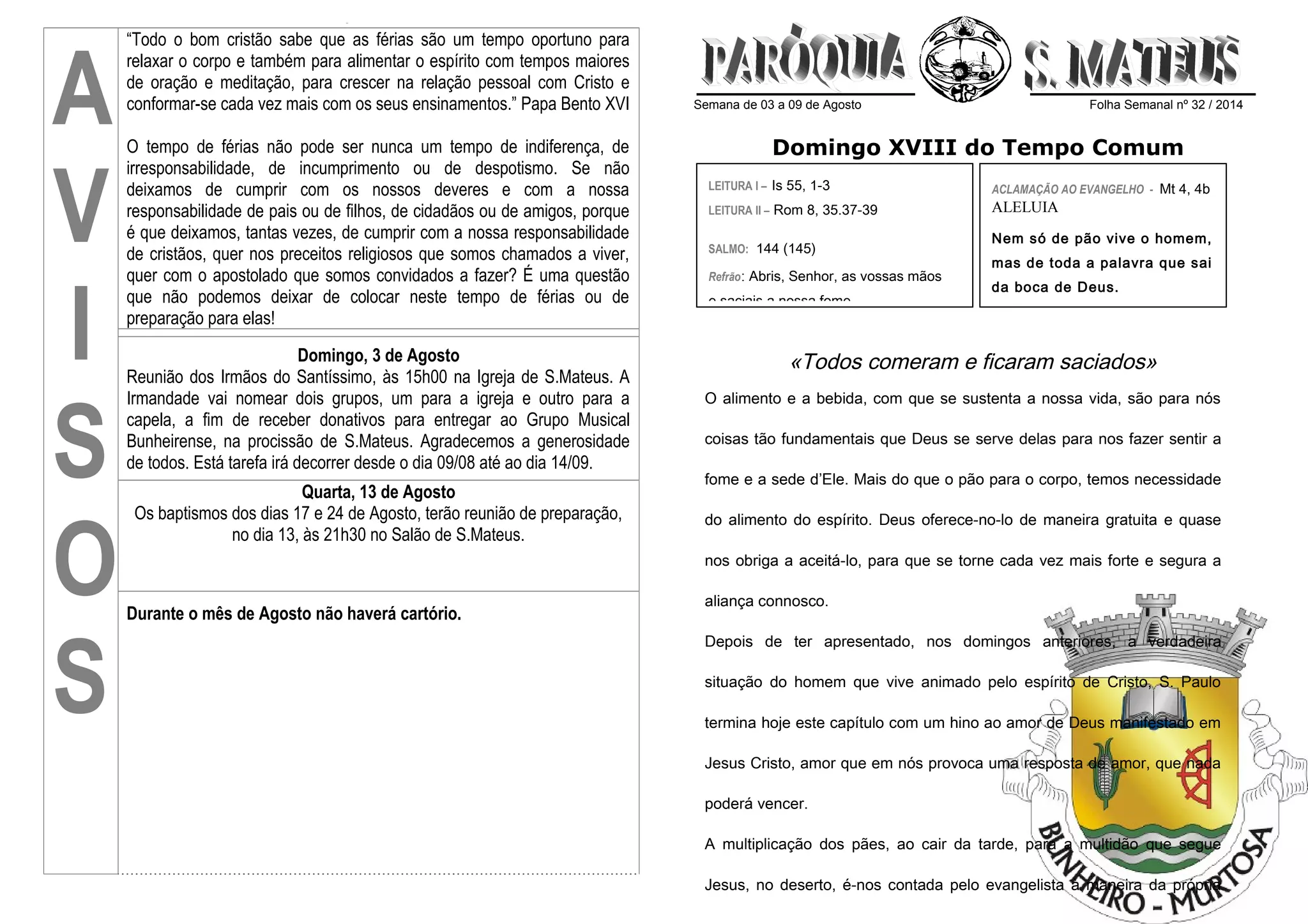 3) Finalmente, anuncia eventos locais na igreja, incluindo uma reunião de preparação para batismos e uma reunião de uma irmandade para arrecadar doações.