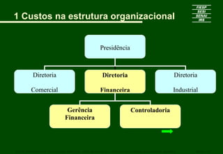 Este documento discute os elementos dos custos de produção, incluindo: (1) materiais diretos como matérias-primas e materiais de embalagem; (2) mão-de-obra direta referente aos funcionários que trabalham diretamente na produção do produto; (3) custos indiretos de produção como depreciação de equipamentos e custos administrativos alocados à produção.