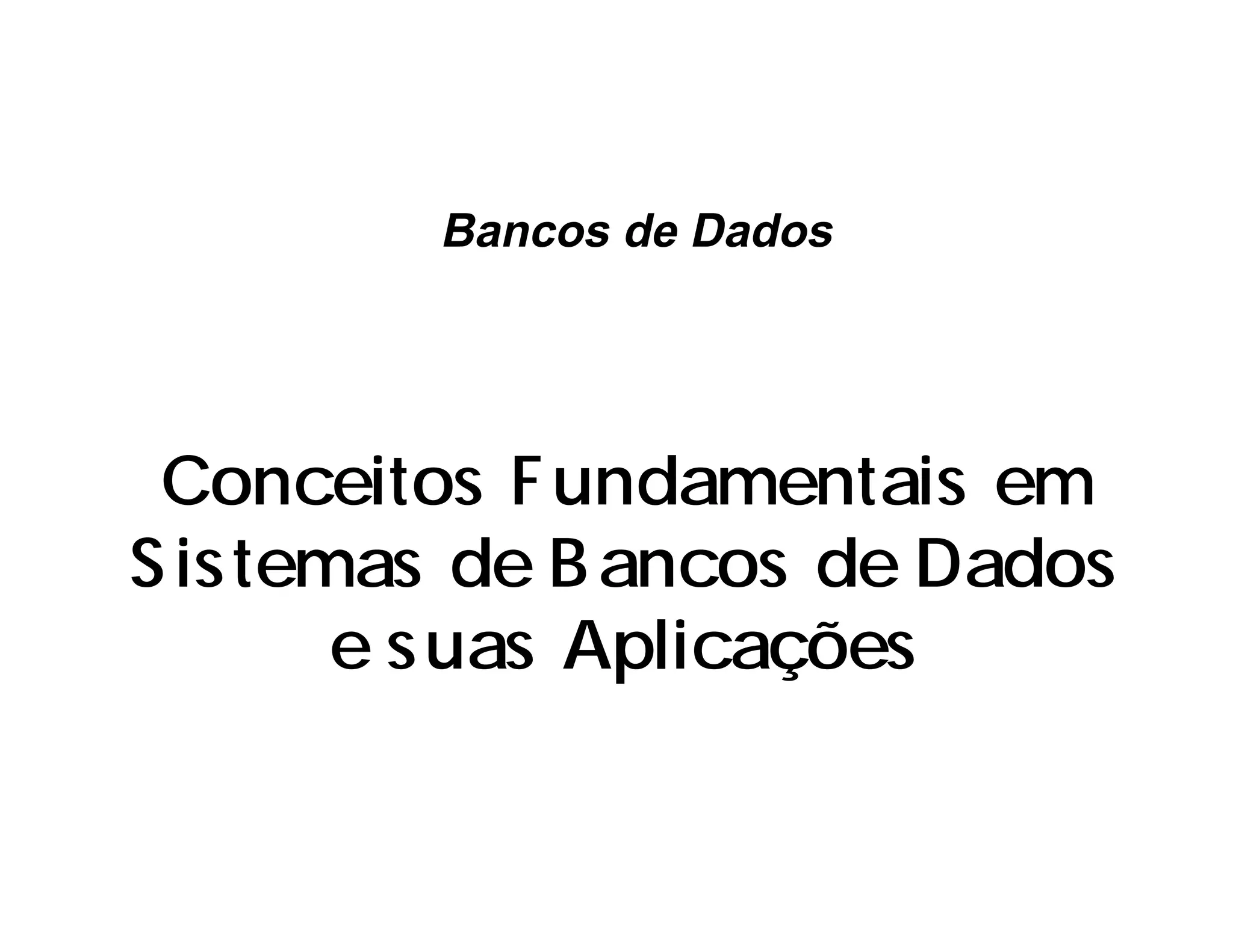 O documento discute conceitos fundamentais de sistemas de bancos de dados, incluindo: 1) definições de bancos de dados, sistemas de bancos de dados e sistemas de gerenciamento de bancos de dados; 2) modelos lógicos de dados como o modelo relacional; e 3) papéis humanos como administrador de bancos de dados.