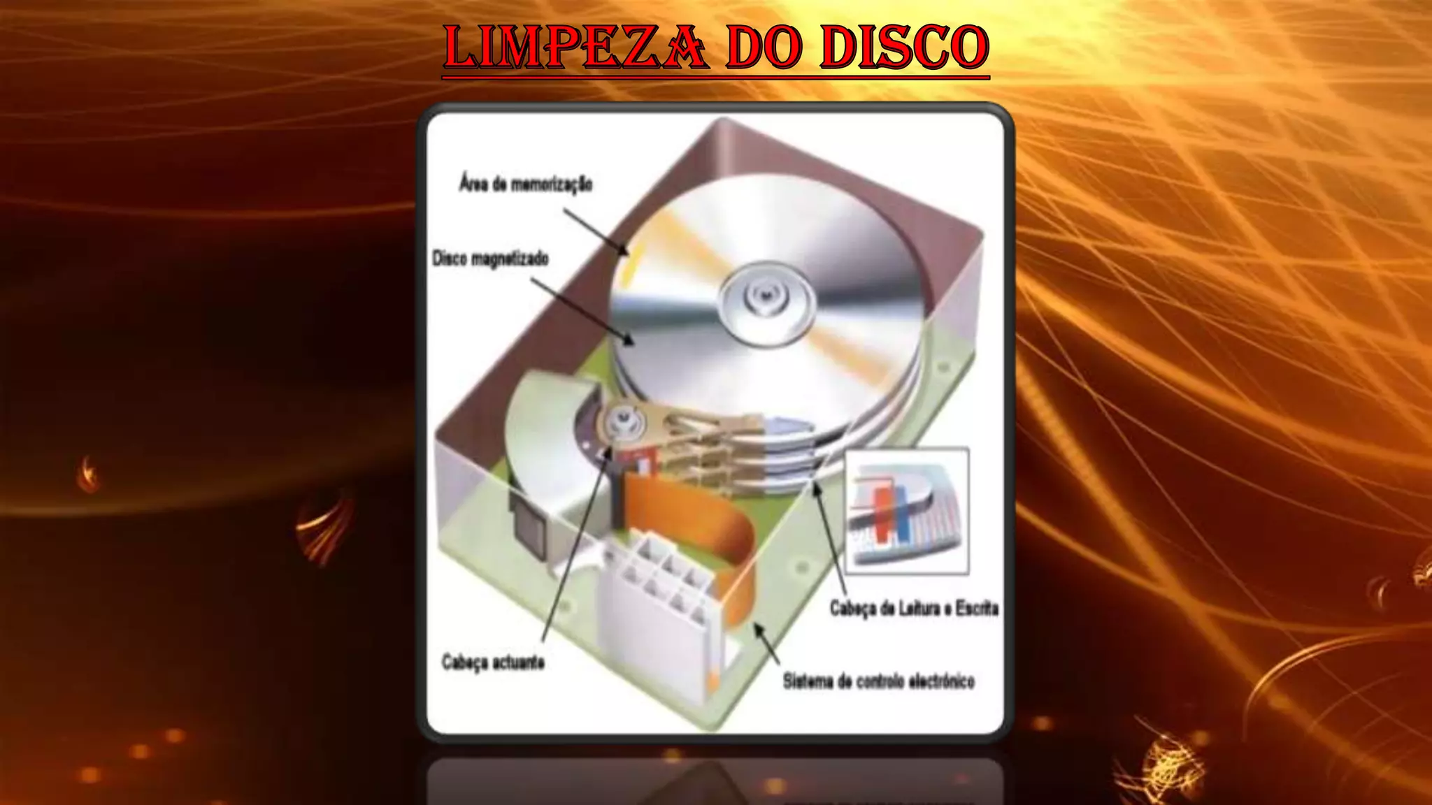 O documento descreve os passos para limpar o disco rígido, incluindo selecionar a unidade de disco, calcular o espaço que pode ser liberado e remover arquivos temporários e desnecessários para liberar espaço no disco.