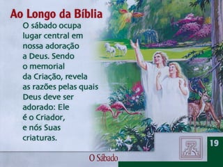 Desde a criação do Mundo até o Hoje, o Sábado do sétimo dia continua sendo o memorial do Deus Criador de todas as coisas.