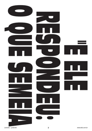Este documento parece ser uma lista de páginas web com o título "Juniores" e as datas "jun02-05". Fornece links para 3 páginas no site "www.ebd.com.br" relacionadas a esse tópico.