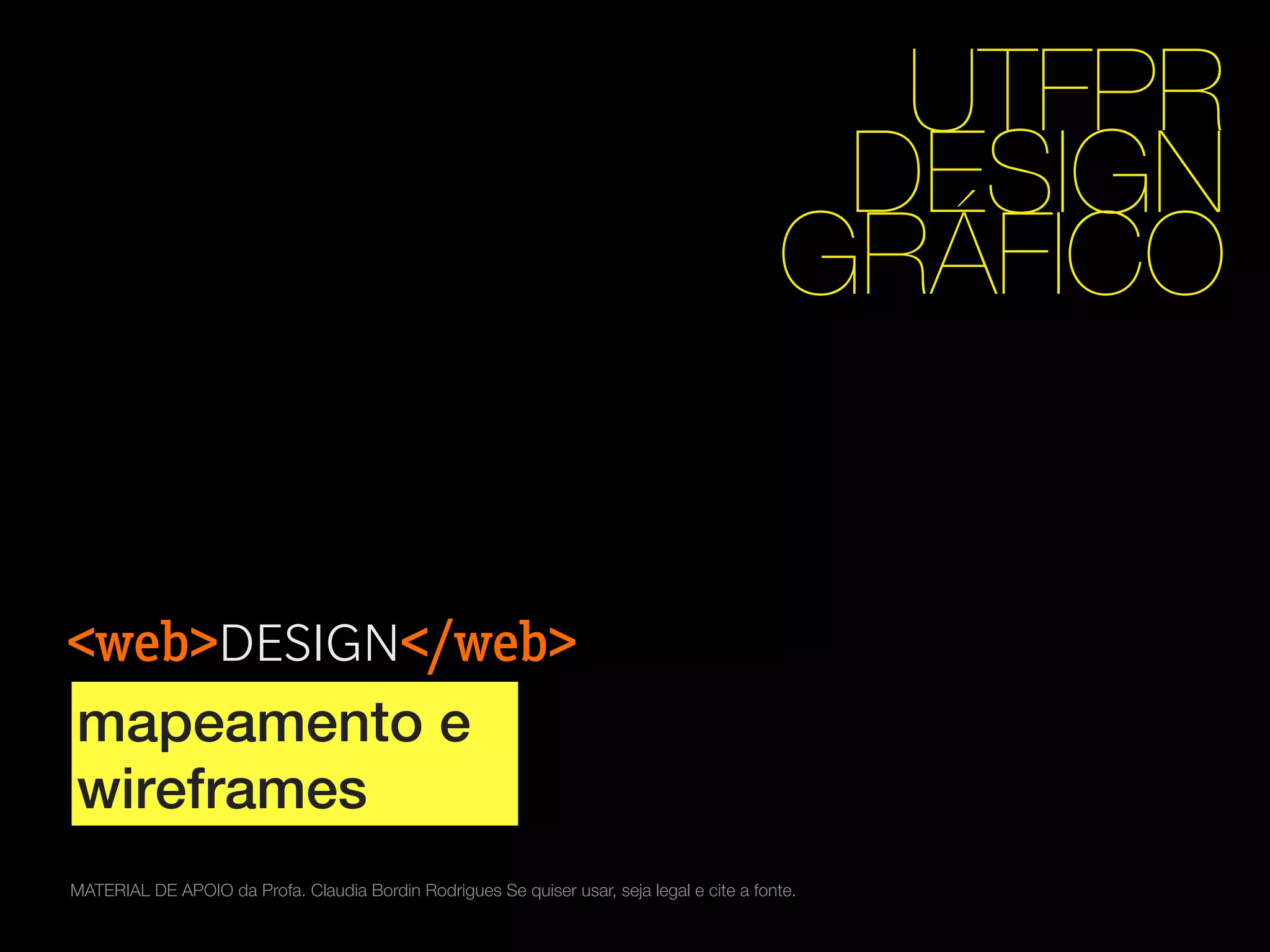 O documento discute mapeamento e wireframes para design de interfaces. Explica que mapeamento envolve categorizar informações para simplificar a interação do usuário. Detalha esquemas de categorização como por assunto, tarefa, público-alvo e metáfora. Também discute wireframes, definindo-os como esqueletos de sites para apresentar elementos das páginas de forma simples. Fornece links para ferramentas e exemplos de wireframes.