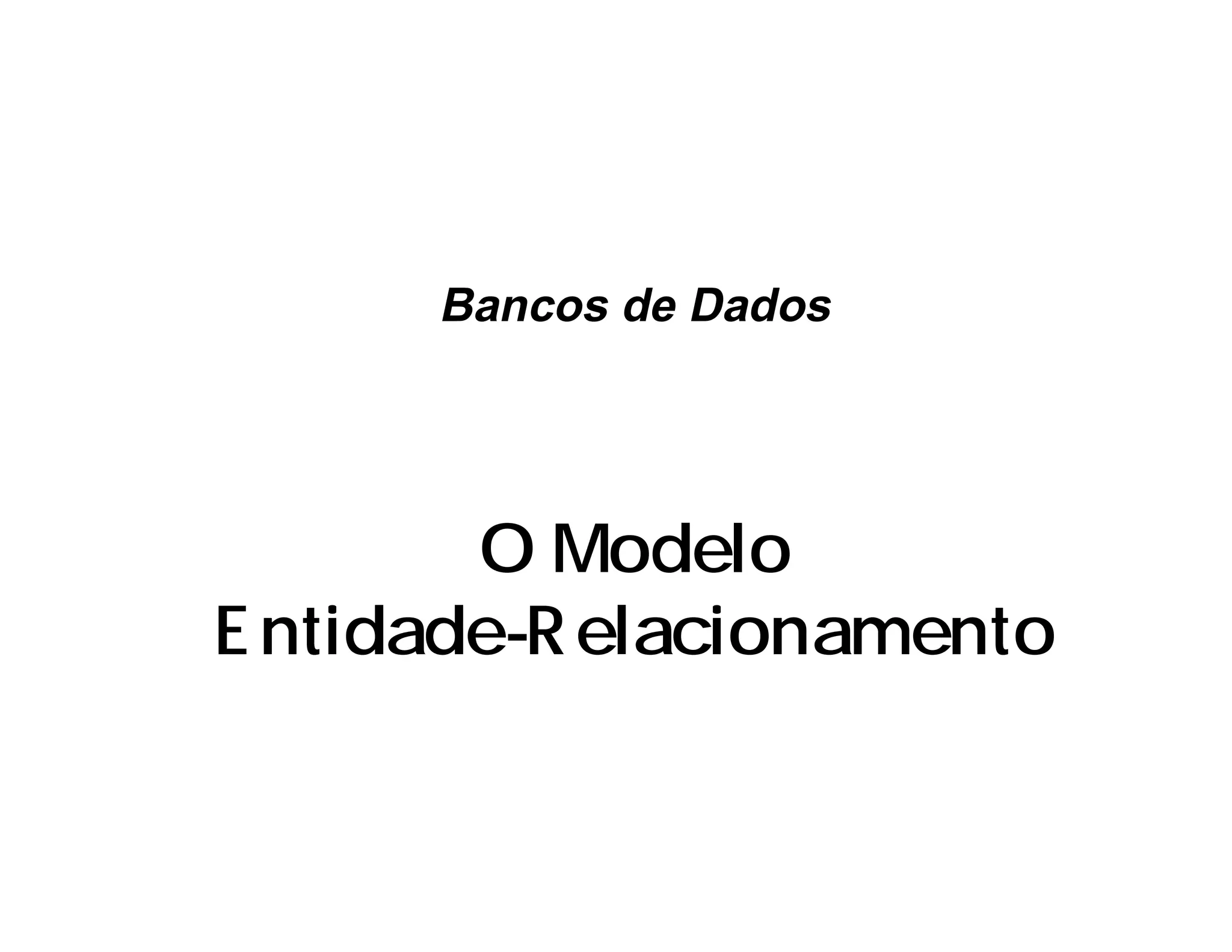 O documento descreve o modelo entidade-relacionamento para bancos de dados, incluindo conceitos como entidades, atributos, relacionamentos, cardinalidades, chaves, generalização e outros. É apresentado um exemplo detalhado de um modelo E-R para uma companhia com entidades como funcionário, departamento, projeto e seus relacionamentos.