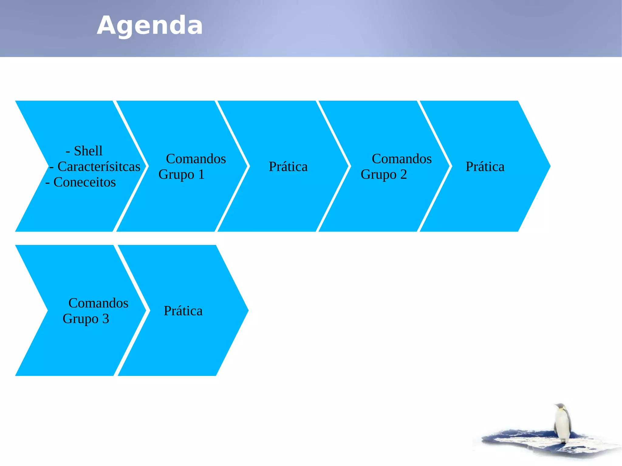 O documento apresenta uma introdução aos comandos básicos do shell do Linux, divididos em três grupos. Apresenta conceitos como entrada e saída padrão e variáveis de ambiente. Inclui exemplos de uso de comandos como ls, cd, grep, find e df.