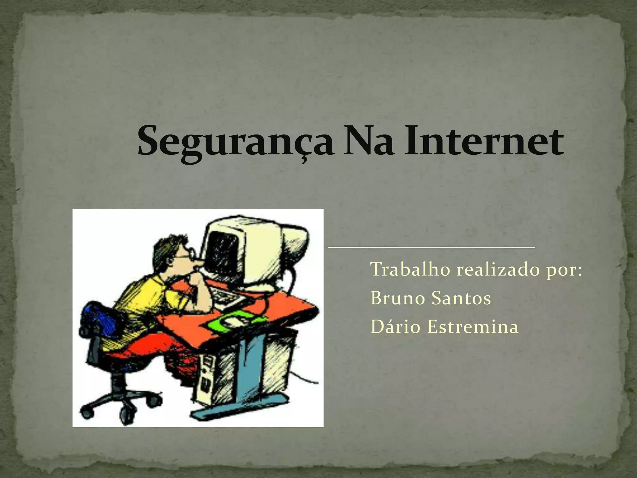 O documento fornece instruções sobre segurança na internet, incluindo instalar um antivírus atualizado, manter aplicações atualizadas, não fornecer dados pessoais online sem segurança, e ensinar crianças a usarem a internet com cuidado. Também discute cyberbullying e vírus de computador.