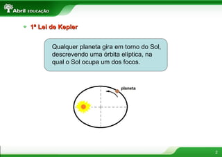 O documento apresenta as três leis de Kepler que descrevem o movimento dos planetas em torno do Sol, a lei da gravitação universal de Newton, e como estas leis explicam o movimento de satélites naturais em órbita ao redor de planetas.