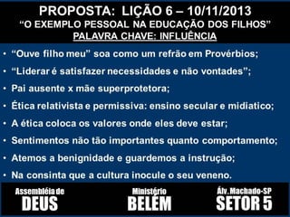 O documento discute o poder e o uso correto das palavras de acordo com a Bíblia. Ele destaca que as palavras podem matar ou vivificar, e enfatiza a importância de usar a língua para adorar a Deus e edificar os outros, evitando a tagarelice e a maledicência.