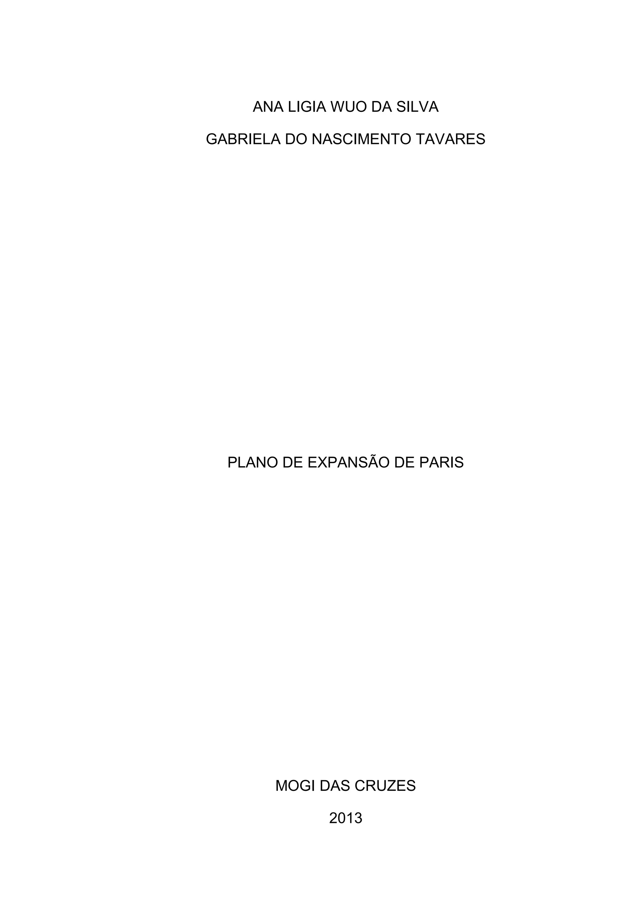 O documento descreve o Plano de Expansão de Paris elaborado por Georges-Eugène Haussmann no século XIX. O plano visava modernizar a cidade, criando grandes avenidas para melhorar a circulação e a higiene, além de remodelar a paisagem urbana e a distribuição socioespacial da população. O documento detalha as intervenções realizadas e seus impactos na estrutura e funcionamento da capital francesa.