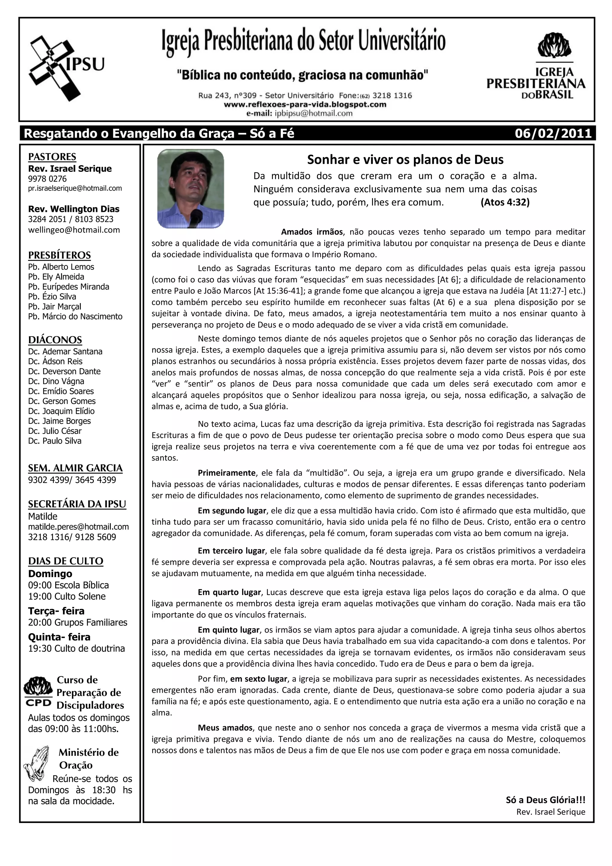 [1] O documento descreve a vida comunitária da igreja primitiva como um exemplo a ser seguido pela igreja atual. [2] A igreja primitiva era unida pela fé em Cristo apesar das diferenças entre seus membros. [3] Os membros da igreja primitiva compartilhavam tudo o que tinham e ajudavam uns aos outros com amor e generosidade.