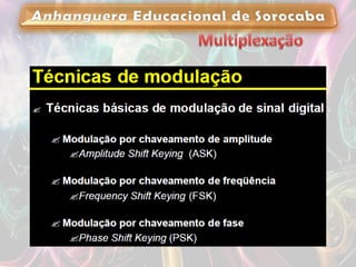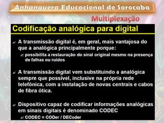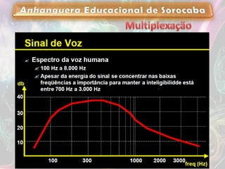 O documento resume conceitos de metrologia do som e múltiplas técnicas de modulação e transmissão de sinais de voz. Também fornece detalhes sobre o conteúdo adicional disponível no site do professor sobre esses tópicos.
