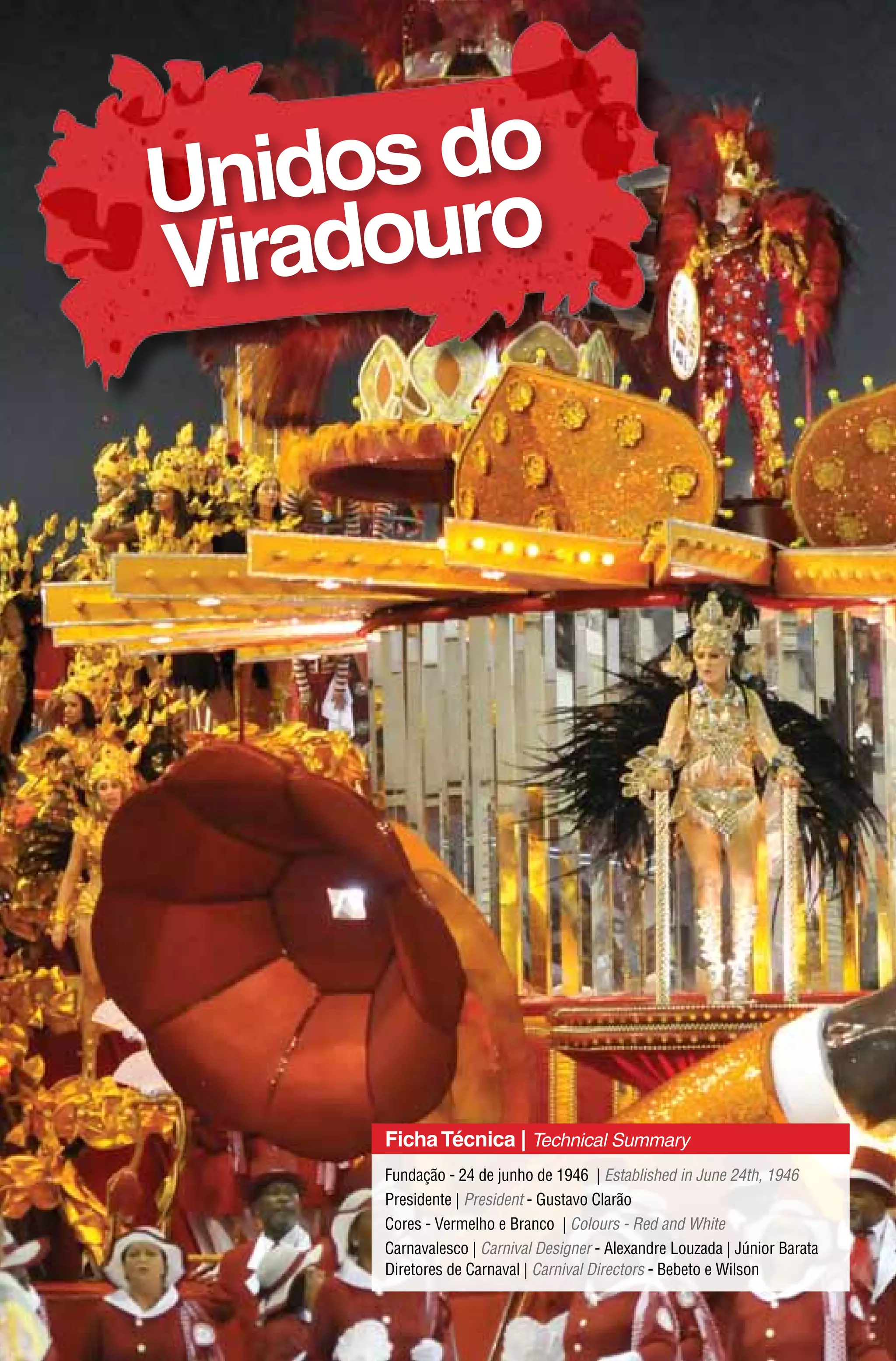 O documento resume o desfile da escola de samba Unidos do Viradouro, que retrata o pensamento do escritor Nelson Rodrigues. O desfile é dividido em três setores que abordam a vida e obra de Nelson Rodrigues através de alas representando personagens, temas e aspectos de sua literatura.