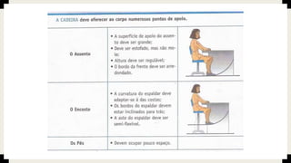 O documento discute a organização e gestão de um posto de trabalho, incluindo: 1) Funções comuns de um assistente administrativo e competências necessárias; 2) Importância da planificação de tarefas e ergonomia para um bom desempenho e saúde do trabalhador.