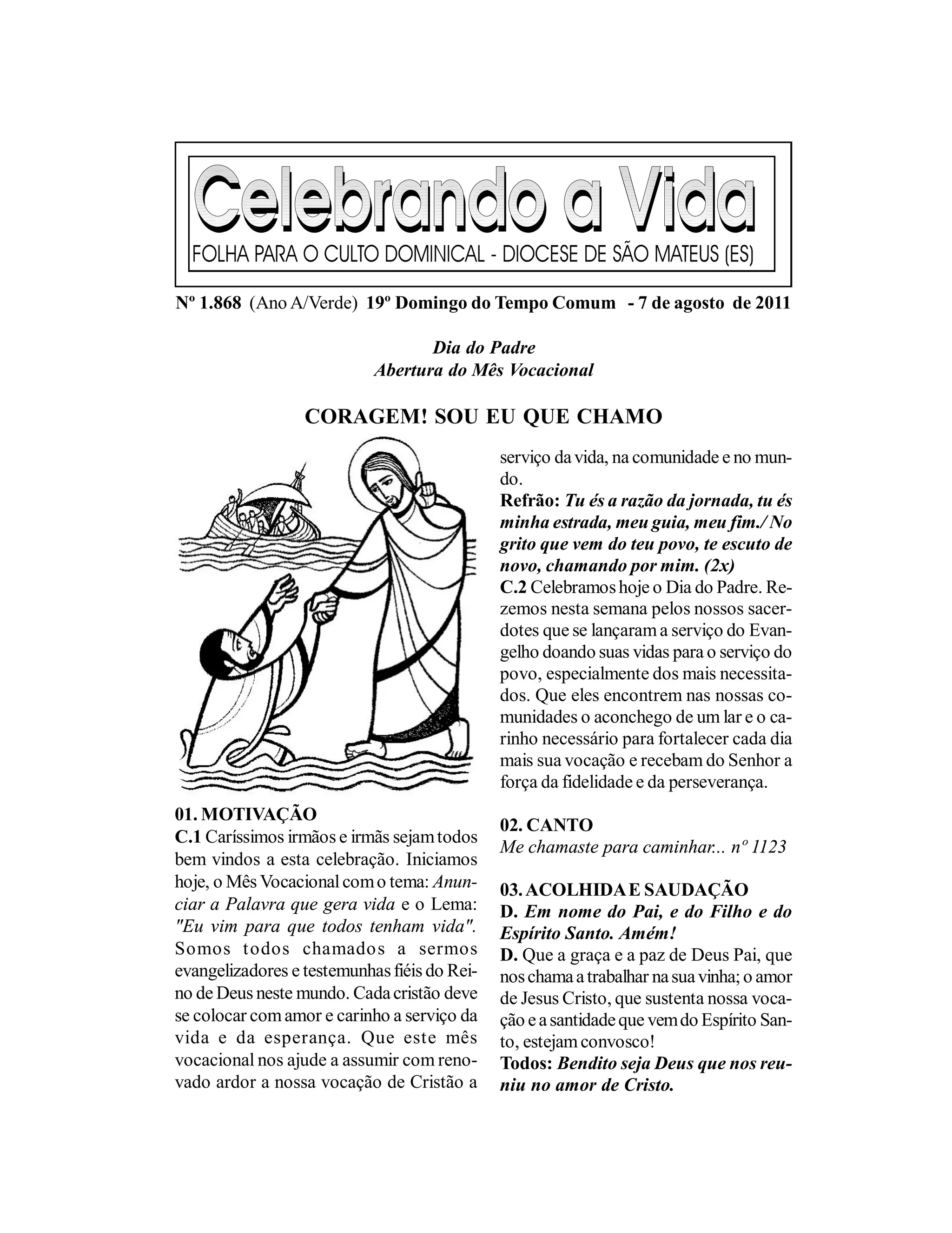 O documento resume uma celebração religiosa para o Dia do Padre e a abertura do Mês Vocacional. A celebração inclui cânticos, leituras bíblicas, uma homilia sobre o chamado de Deus e a vocação de cada cristão, e orações pelos padres e vocações à Igreja.