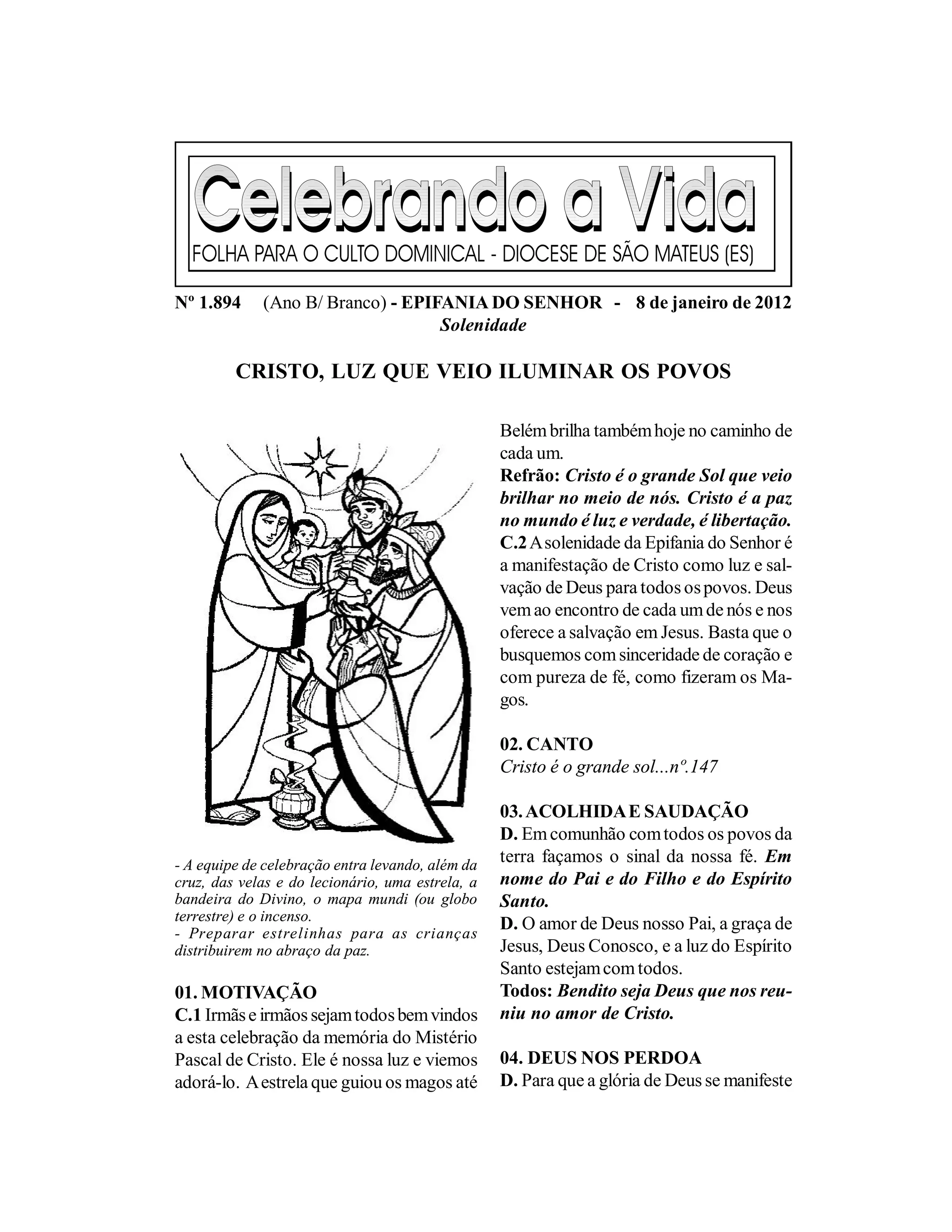 Este documento é o texto de uma celebração litúrgica da Epifania do Senhor. Resume as seguintes informações essenciais: