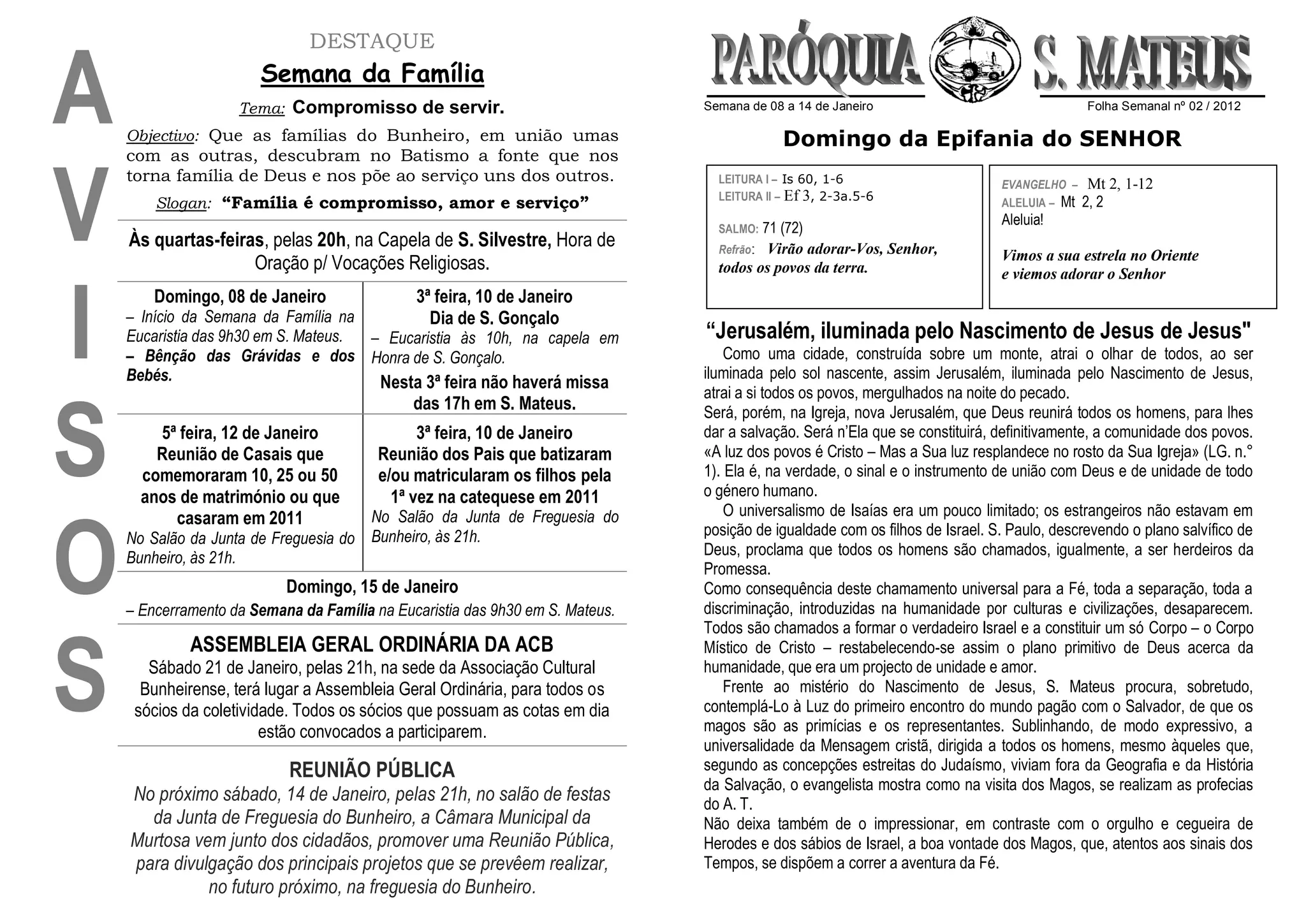 2) Inclui também informações sobre uma assembleia geral da associação cultural local e uma reunião pública da câmara municipal sobre projetos futuros.