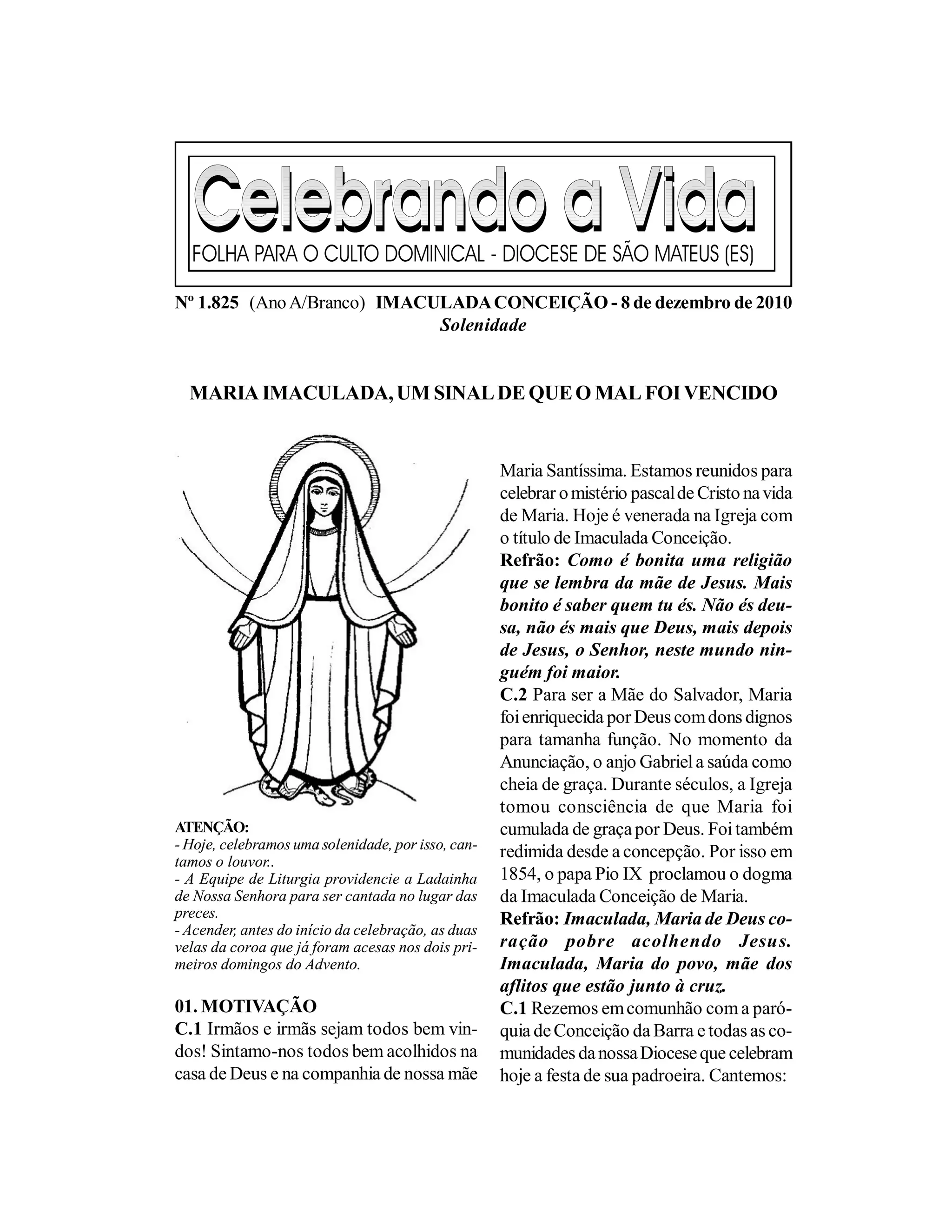Nº 1.825 (AnoA/Branco) IMACULADA CONCEIÇÃO - 8 de dezembro de 2010