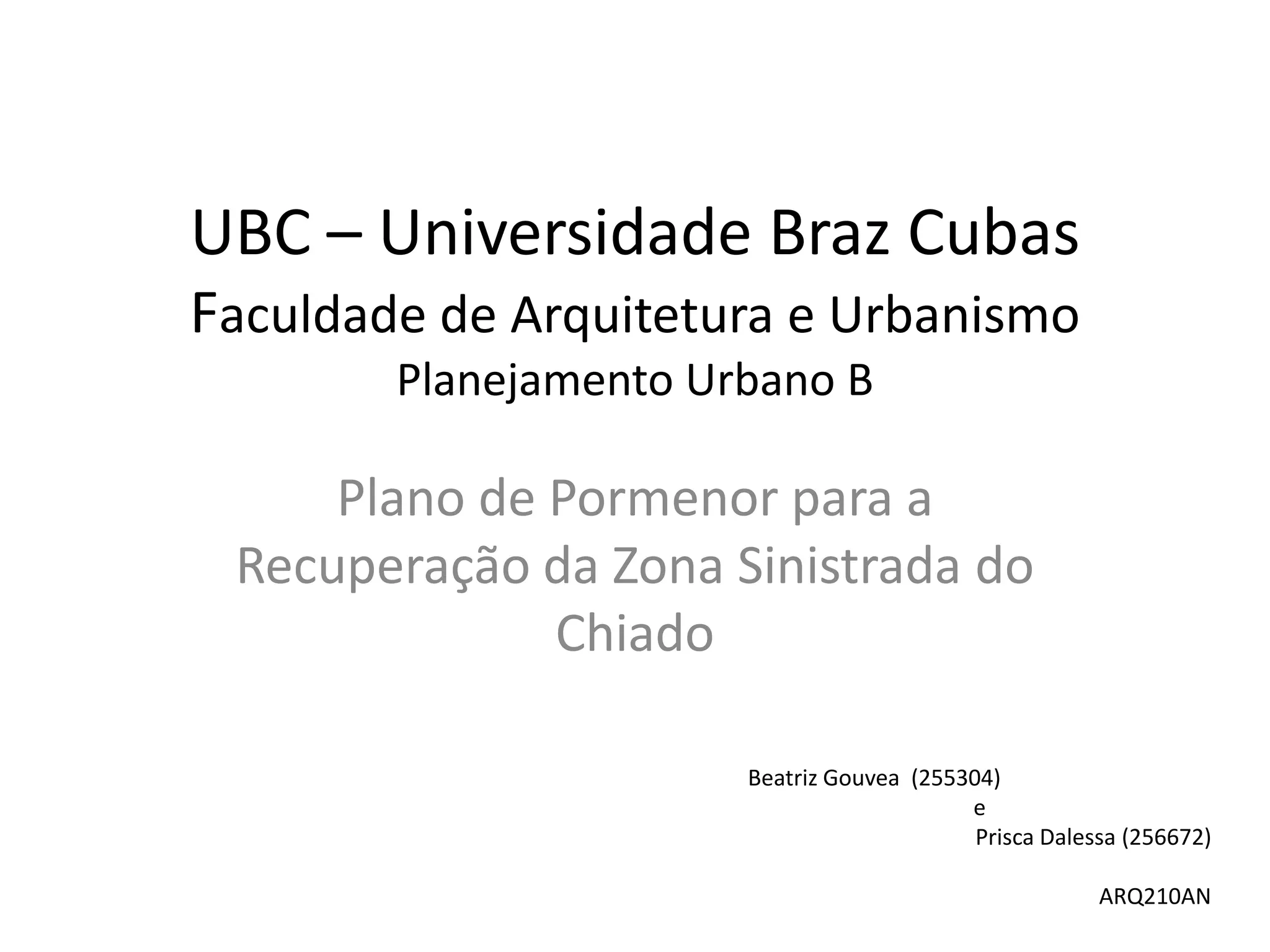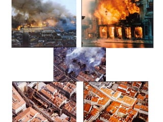 O documento descreve o plano de recuperação da zona sinistrada do Chiado em Lisboa após um incêndio em 1988, liderado pelo arquiteto Álvaro Siza Vieira. O plano visava preservar as características históricas e culturais da área, como fachadas e elementos do século XVIII, ao mesmo tempo em que integrava novos espaços públicos e melhorava a ligação ao metrô. Siza Vieira considerou que seu trabalho respeitou a memória do local e permitiu que o Chiado continuasse funcionando