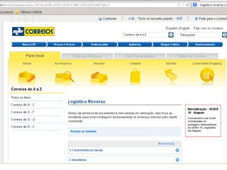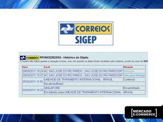 O documento discute a importância da logística e entrega para a satisfação do cliente, listando as principais dimensões de avaliação como disponibilidade, prazo de entrega e informações sobre o pedido. Também aborda tópicos como embalagem, opções e preços de entrega pelos Correios e a necessidade de preparo do estoque para atender o crescimento das vendas.