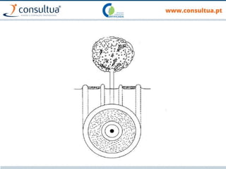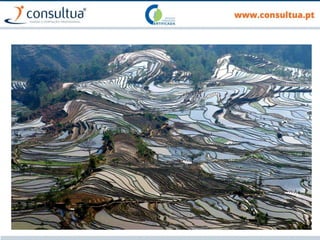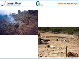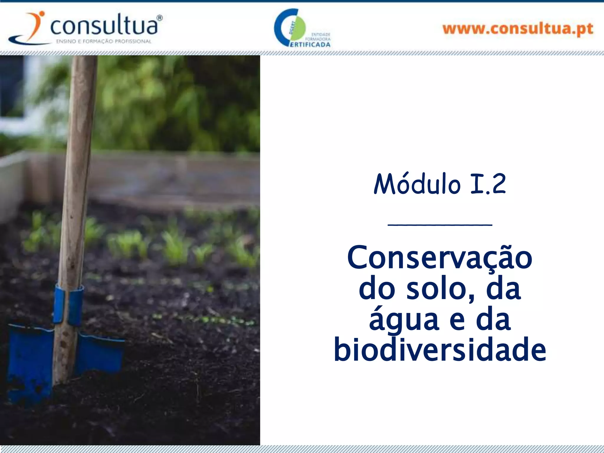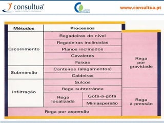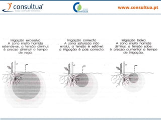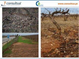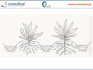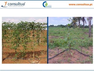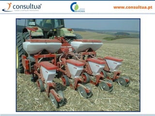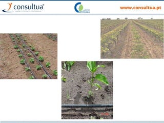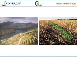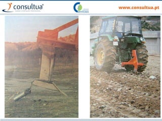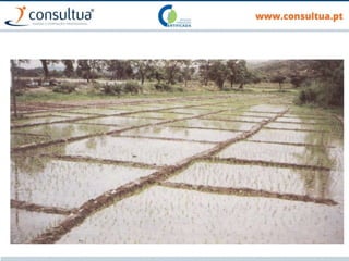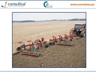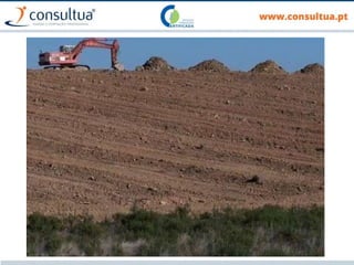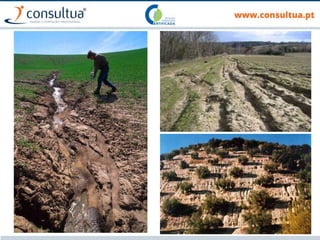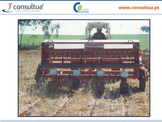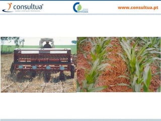 O documento discute técnicas de preparação e manutenção do solo de acordo com os princípios da agricultura de conservação, incluindo diferentes tipos de mobilização do solo, formas de evitar a erosão e promover a conservação do solo, drenagem e sistemas de rega.