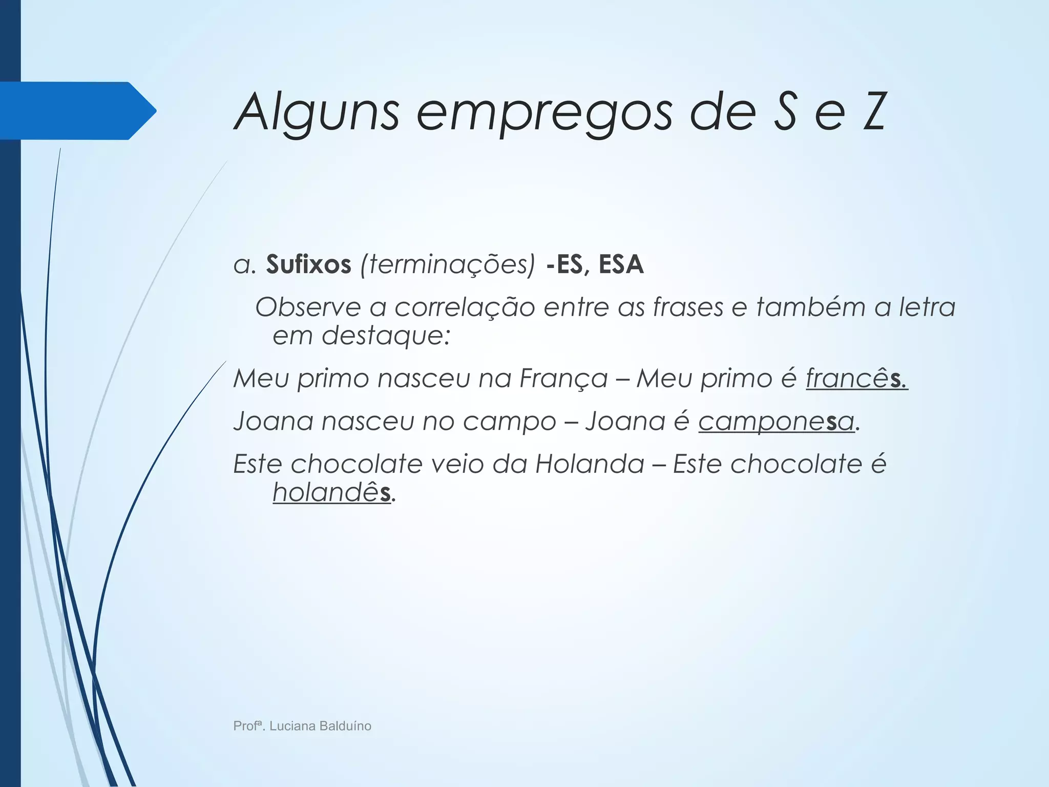 O documento discute regras ortográficas sobre o uso de letras como S, Z, J, G e X em diferentes contextos como sufixos, ditongos e raízes de palavras. As regras abordam a escrita correta de palavras derivadas, formas verbais, nacionalidades e gêneros femininos.