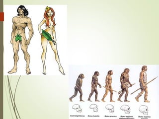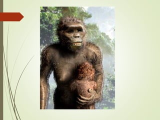 Este documento discute a pré-história, dividindo-a em Paleolítico, Neolítico e Idade dos Metais. Explica a evolução dos primeiros seres humanos e como surgiram as sociedades sedentárias e a agricultura no Neolítico, com o uso de ferramentas de pedra aprimoradas.