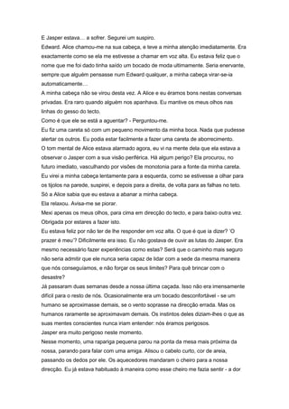 Edward não consegue ler os pensamentos da nova estudante Bella Swan, o que é inédito para ele. Enquanto a observa, nota a curiosidade e fascínio dela pelos Cullen, mas permanece em silêncio mental. Isto intriga Edward, que tenta ouvir melhor sem sucesso.