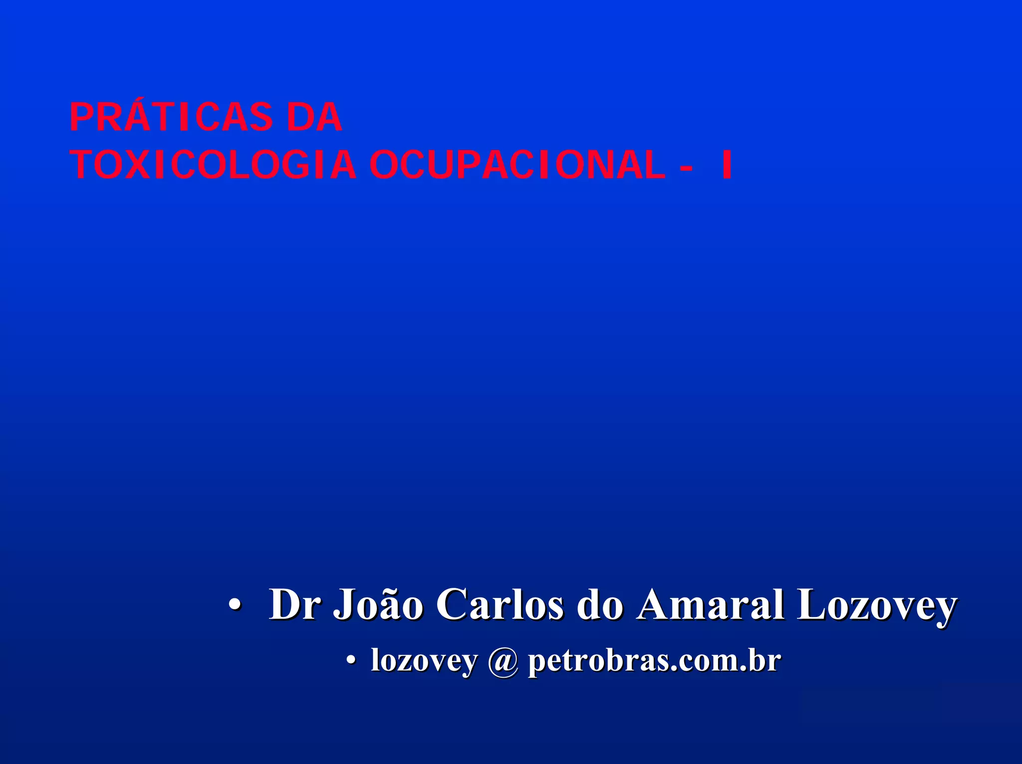 O documento discute práticas da toxicologia ocupacional, incluindo agentes ambientais que causam doenças ocupacionais, conceitos como exposição estimada, dose, efeito e resposta. Também aborda processos como absorção, metabolização e excreção de substâncias químicas no corpo, além de limites de tolerância e monitoramento de ambientes e biológico para prevenção e detecção de efeitos adversos à saúde.