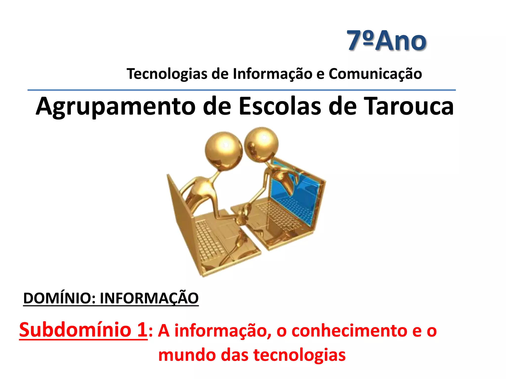 O documento discute os conceitos fundamentais de informação e tecnologias de informação e comunicação (TIC). Aborda o que é informática, dados e informação, as principais áreas das TIC como informática, burótica, telemática e controlo e automação. Também descreve os componentes centrais de um sistema informático como hardware, software, processador, memória e periféricos.