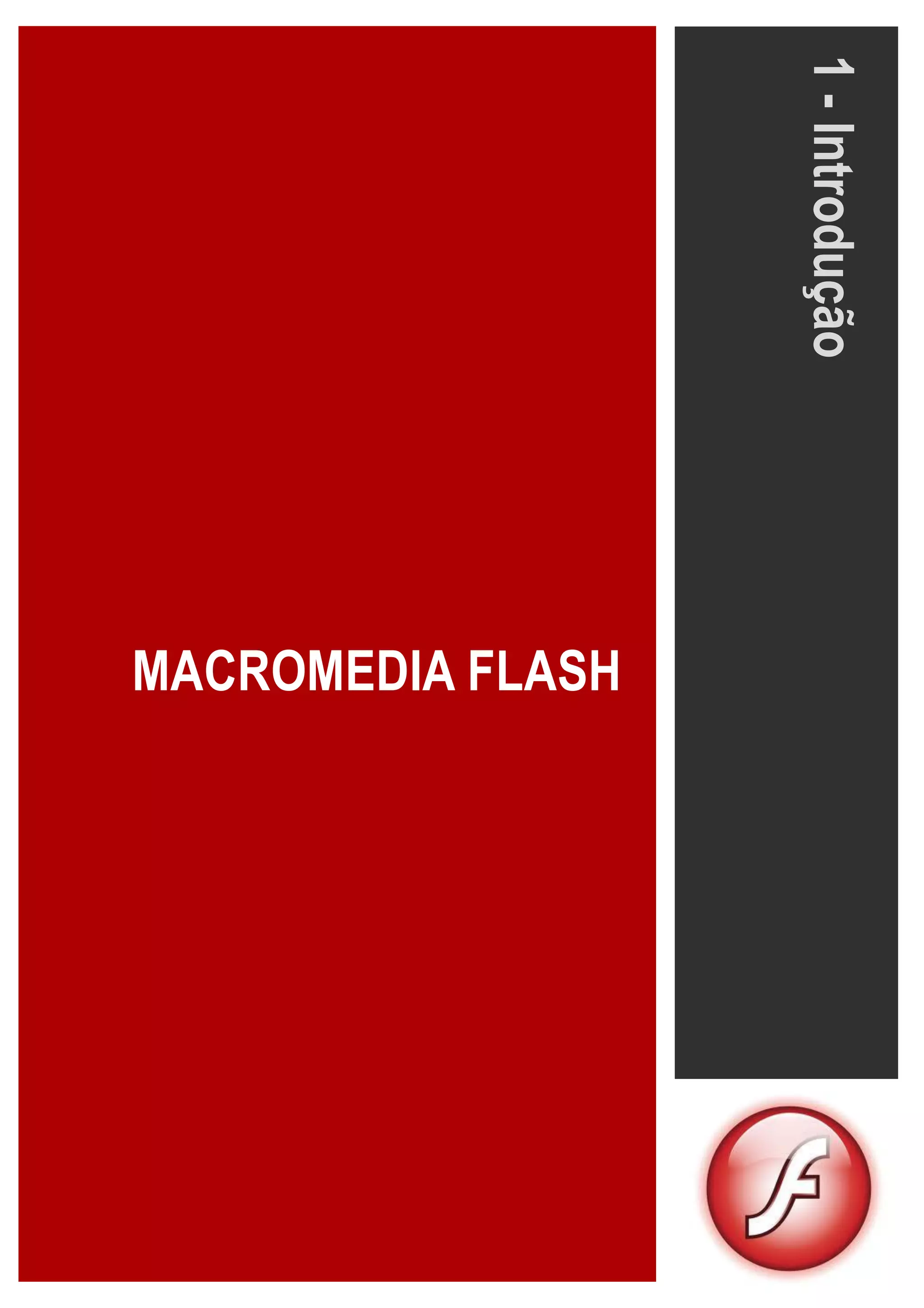 O documento introduz o Macromedia Flash, descrevendo-o como uma ferramenta para criar animações e aplicativos web interativos utilizando recursos como arrastar e soltar, comportamentos com ActionScript e efeitos especiais. O trabalho é feito em arquivos .fla e publicado em arquivos .swf para implantação na web.