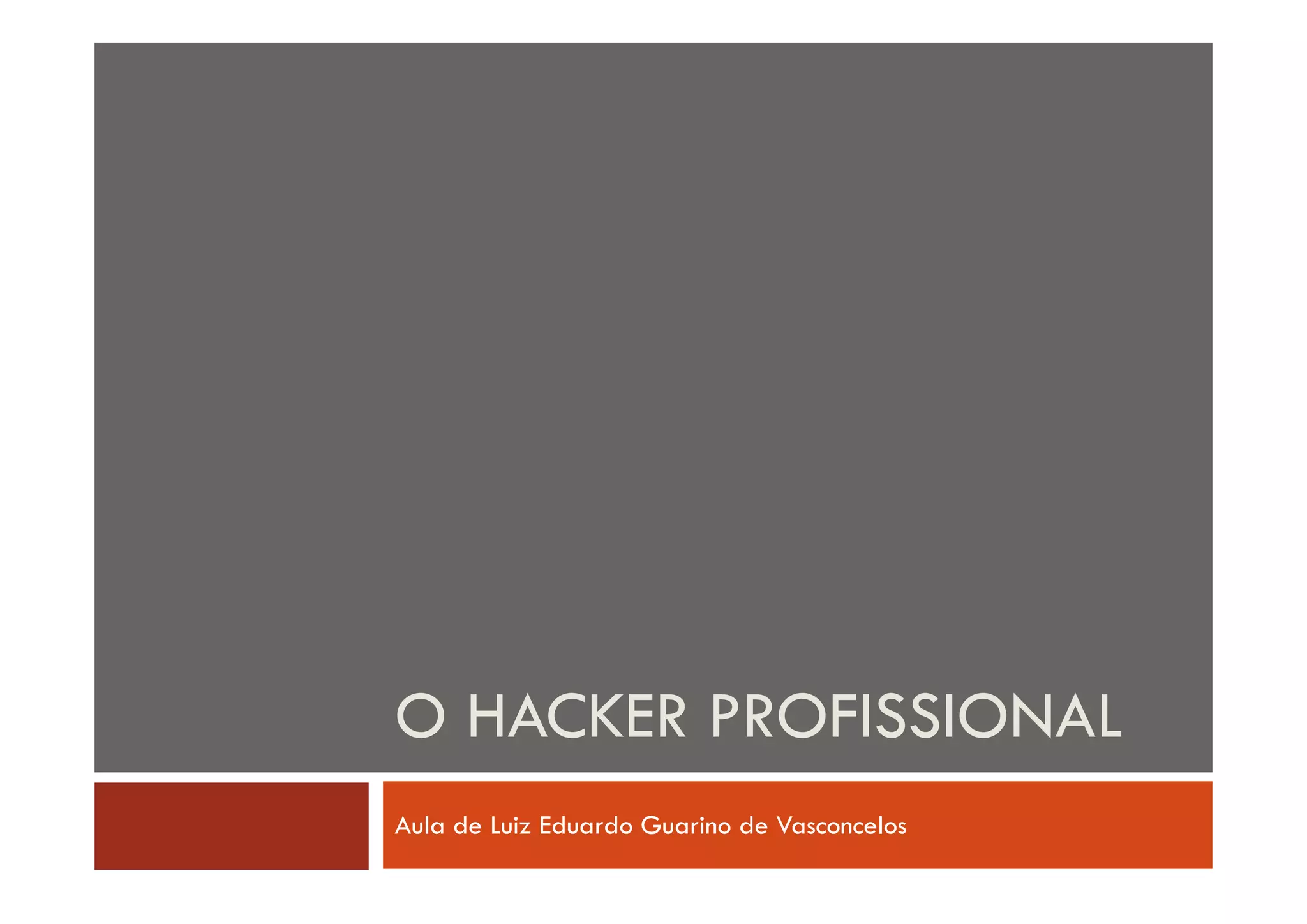 O documento discute o conceito de hacker profissional. Em 3 frases: