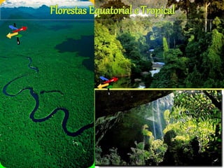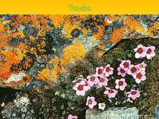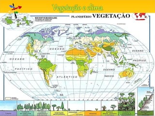 O documento descreve diferentes biomas terrestres, incluindo desertos, tundras, florestas mediterrânicas e suas respectivas faunas. Ele também lista os maiores desertos do mundo por área e explica os principais tipos de clima e suas vegetações características.
