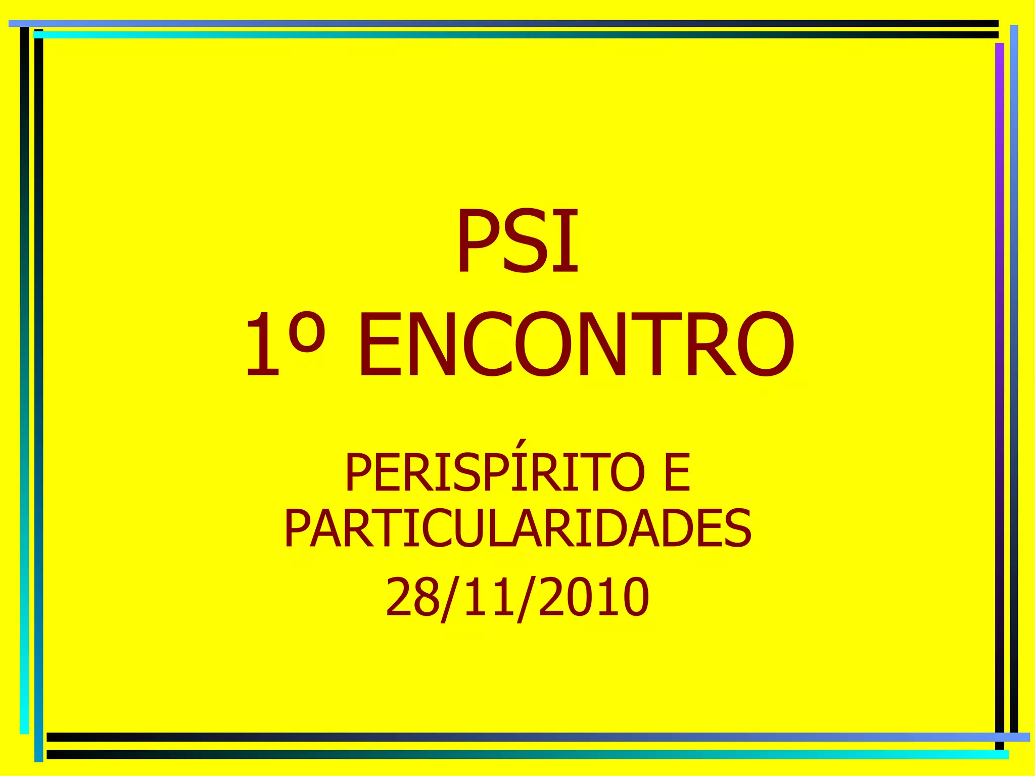 O documento discute as propriedades e funções do perispírito, que é o corpo etérico que envolve o corpo físico e serve como intermediário entre o corpo e a mente/espírito. O perispírito recebe e transmite impressões e pensamentos, desempenha um papel na saúde do corpo, e possui características como plasticidade, sensibilidade e unicidade. Suas funções incluem servir como instrumento de ligação entre os mundos físico e espiritual, organizar e sustentar o corpo, e prover uma