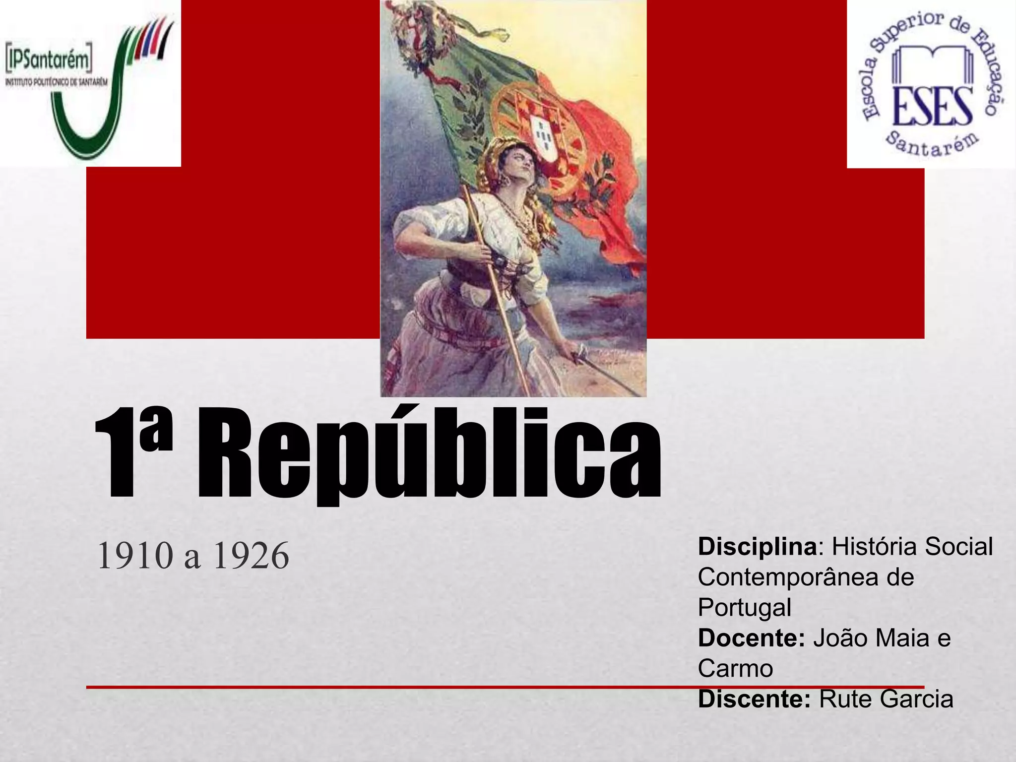 A 1a República Portuguesa durou de 1910 a 1926. Proclamou-se a República em Lisboa e o último rei foi D. Manuel II. Reformas importantes incluíram tornar o ensino primário gratuito e obrigatório, criar novas escolas, e promover leis para proteger os direitos dos trabalhadores.