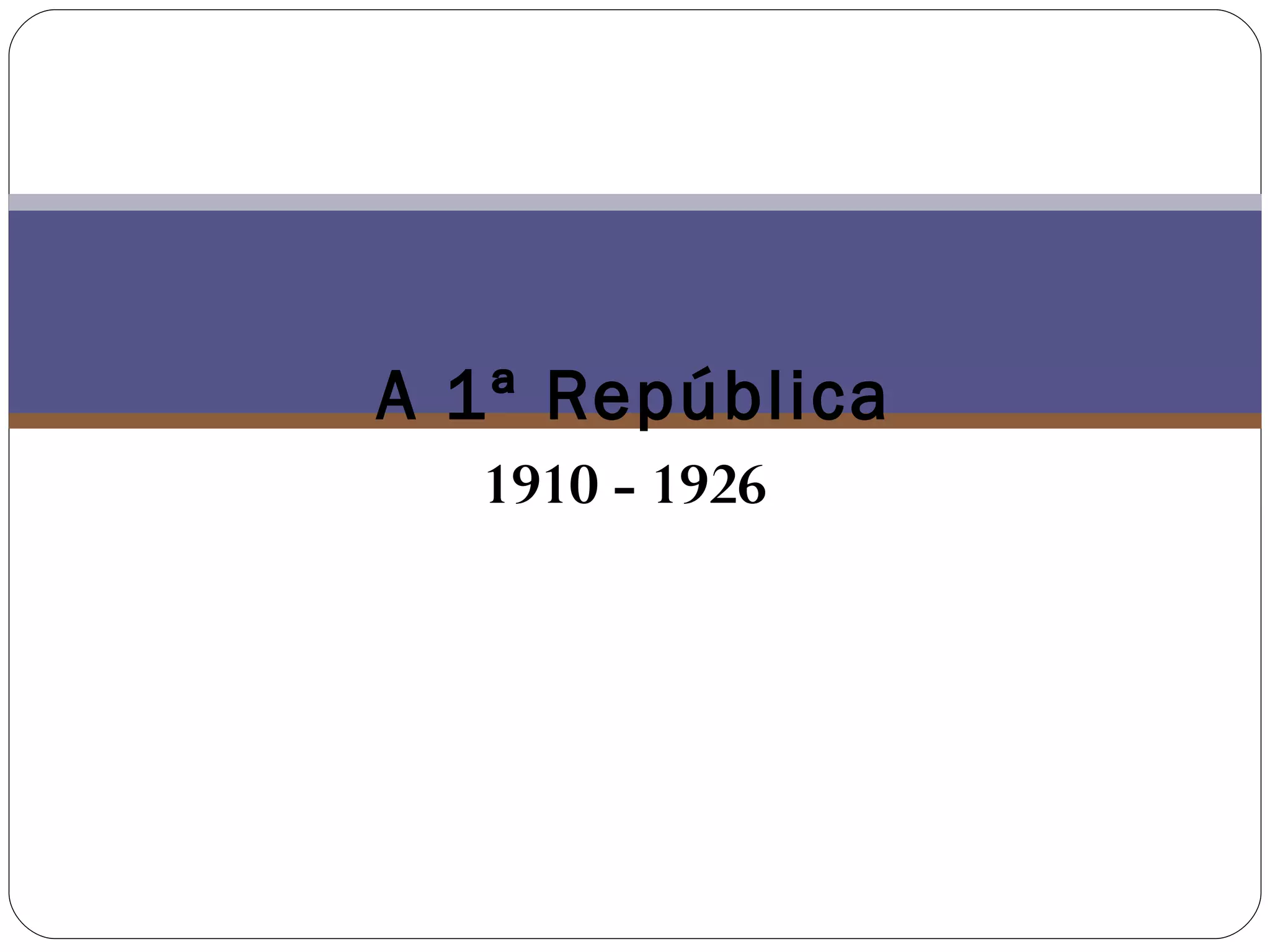 Este documento descreve os principais acontecimentos políticos, sociais e culturais da 1a República Portuguesa entre 1910-1926. Inclui detalhes sobre as novas leis implementadas, como a separação entre igreja e estado e o direito ao divórcio, e o progresso na educação e saúde pública. Também discute as dificuldades econômicas do período e a agitação social que levou a muitas mudanças de governo.
