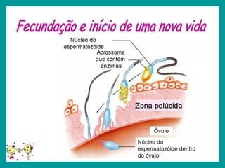 O documento descreve o sistema reprodutor humano masculino e feminino. Nos homens, os testículos produzem espermatozóides, que seguem pelas vias genitais até o pénis. Nas mulheres, os ovários produzem óvulos, que seguem pelas trompas de Falópio até o útero. Ambos os sistemas são regulados por hormônios sexuais.