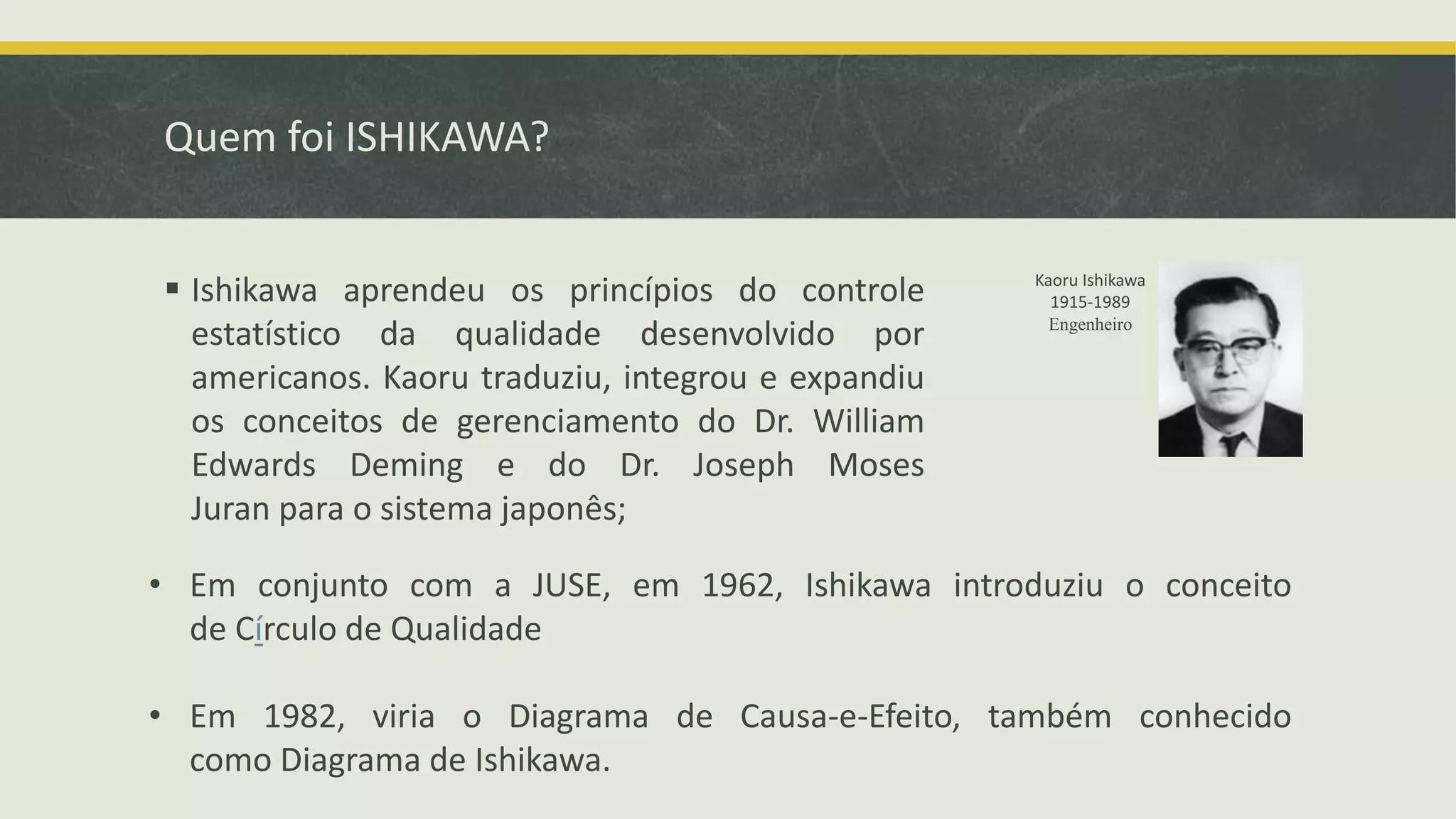 O documento explora o diagrama de Ishikawa, também conhecido como diagrama de causa e efeito, criado por Kaoru Ishikawa para analisar fatores que influenciam resultados e problemas em processos. O diagrama serve como uma ferramenta visual que interliga causas e efeitos, permitindo a identificação de problemas e a discussão de soluções em grupo. Exemplos práticos são fornecidos, incluindo a análise de fatores que determinam a qualidade de um restaurante ou questões referentes ao atendimento ao cliente.