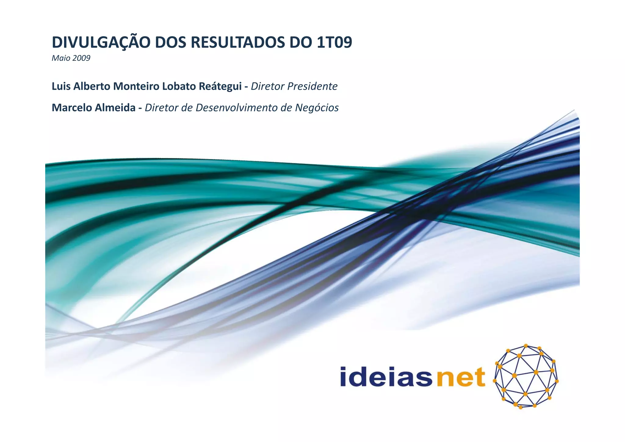 A receita líquida cresceu 4,5% no 1T09, porém o EBITDA caiu 60% devido ao aumento de despesas operacionais. Os segmentos de e-commerce tiveram crescimento de receita e EBITDA, enquanto infraestrutura e telecom teve queda de receita e impacto negativo no EBITDA. Investimentos de R$7,9 milhões foram realizados principalmente em infraestrutura e telecom e mídia, comunicação e conteúdo.