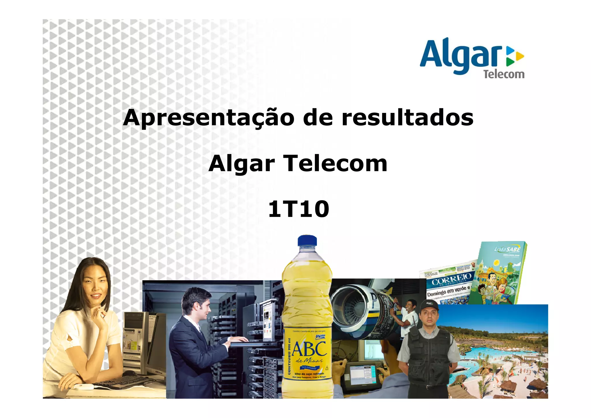 O relatório apresenta os resultados financeiros da Algar Telecom no 1T10, destacando: 1) o crescimento de 11,5% na receita líquida consolidada em relação ao 1T09; 2) o aumento de 13,7% no EBITDA consolidado no período; e 3) o crescimento de 73,6% no lucro consolidado antes de participações no 1T10 em comparação com o 1T09.