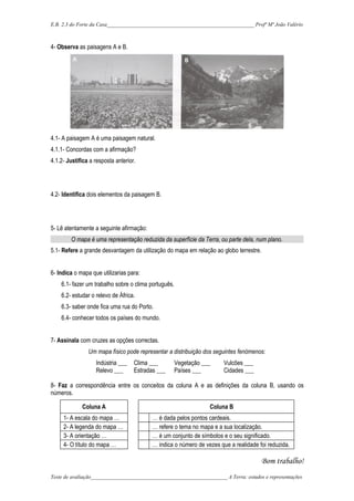 3) Um mapa é uma representação reduzida da superfície terrestre ou parte dela em um plano, mostrando fenô