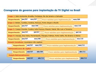 O documento fornece uma introdução à evolução da televisão digital, desde a transmissão das primeiras imagens em preto e branco até os desafios atuais. A televisão digital oferece maior qualidade de imagem e som, portabilidade e novas funcionalidades como interatividade e comércio eletrônico. No entanto, existem desafios como a diversidade de receptores e a necessidade de educar os telespectadores sobre a nova tecnologia.