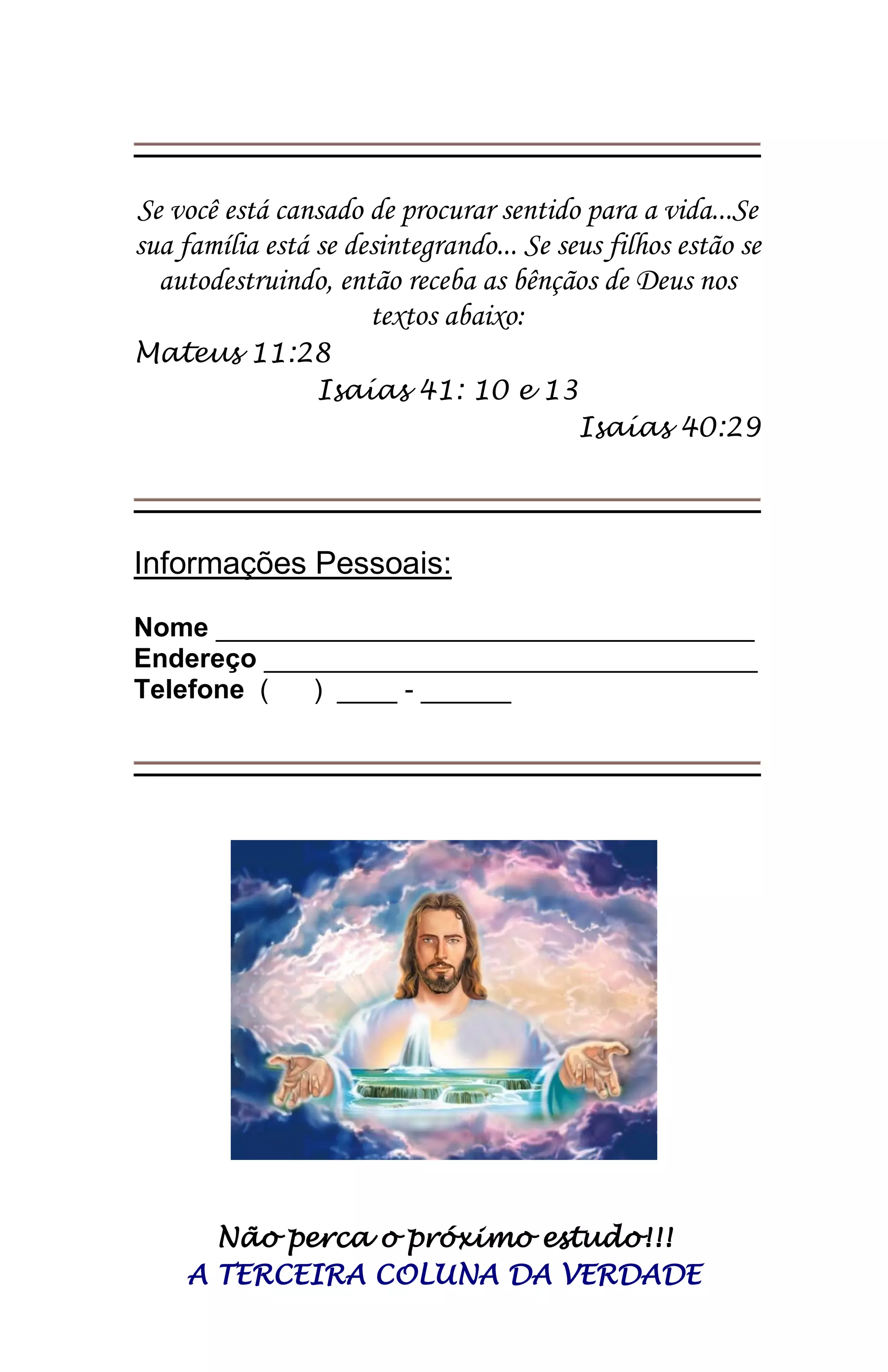 1) O documento convida as pessoas a participarem de um seminário sobre o Apocalipse e a aprenderem sobre a verdade e como ela foi jogada por terra