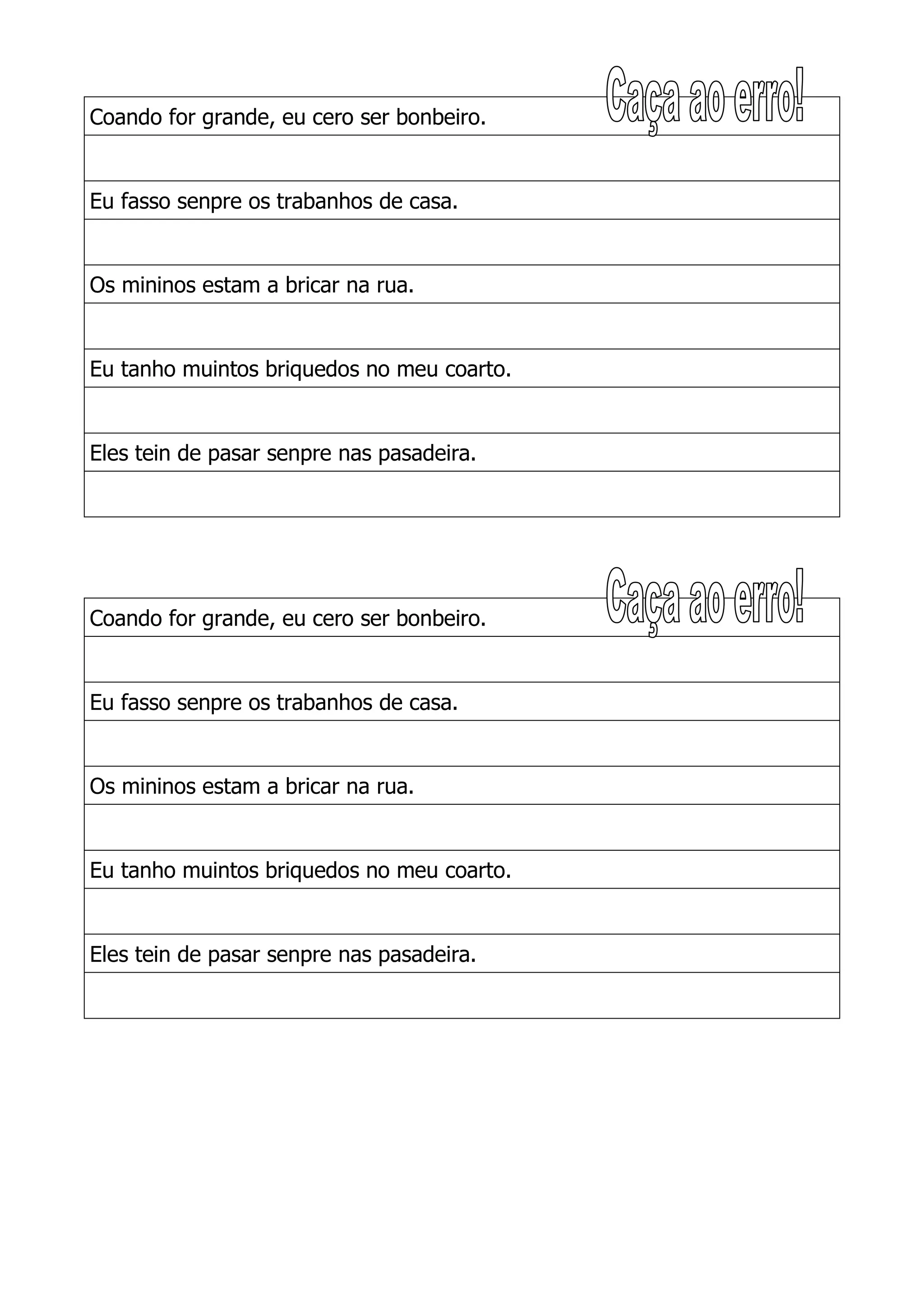 O documento repete que quando crescer quer ser bombeiro e que sempre faz os trabalhos de casa. Também descreve as crianças brincando na rua e que tem muitos brinquedos no quarto, além de mencionar que as crianças devem sempre passar na faixa de pedestres.